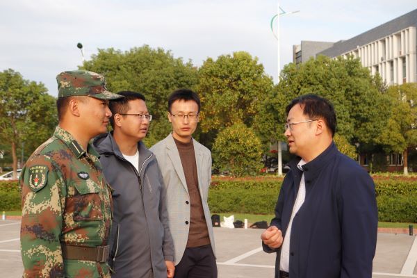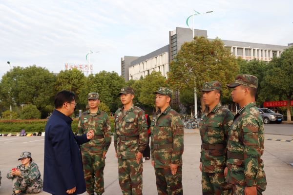 王广飞来到参训员工身边,认真观看训练情况,了解员工们的精神面貌和身体状况,对同学们不畏辛苦、严格要求的军训态度表示肯定,希望同学们珍惜军训时光,强健体魄、磨练意志、振奋精神,在今后的学习和生活中以军事化标准严格要求自己。随后,王广飞与教官亲切交流,对承训团教官表示衷心感谢。 同时王广飞对新生班主任提出了具体要求:“辅导员班主任要坚守军训现场,加强员工思想政治工作,同时与教官保持沟通,加强与教官的配合,保证军训工作顺利进行。”