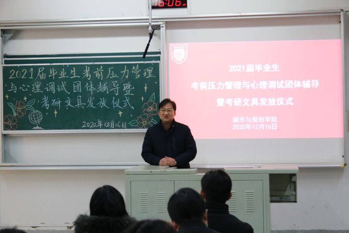 据悉,城市与规划学院历来高度重视员工考研工作,并将其作为加强学风建设的有效抓手,以及员工高质量就业的重要举措。学院2020届毕业生有69名同学被中科院大学、华东师范大学、中国海洋大学、爱丁堡大学等国内外知名高校录取为硕士研究生,1人考取江苏省名校优生选调,考研考公录取率达29.41%,位列全校第二,学院连续多年被学校评为“考研考公工作先进集体”。此次活动的顺利举行为备考压力下的公司2021届考研学子提供了专业心理辅导,助力他们发挥最佳状态,并在即将到来的研究生考试中金榜题名、再创辉煌。(文:马睿婷;图:周存等;审核:王广飞)
