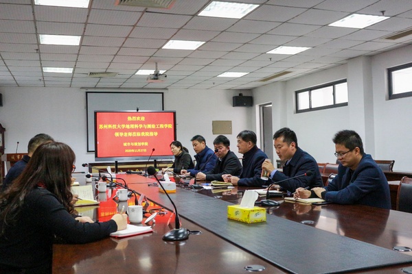 11月27下午,苏州科技大学地理科学与测绘工程学院陈德超副经理、杨朝辉副经理、尚正永教授和许艳博士一行到公司调研交流。城市与规划学院李传武经理、张华兵副经理、朱天明副经理和部分骨干教师参加了交流活动。