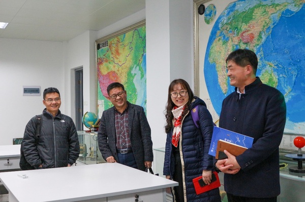 首先,经理李传武教授对杨朝辉副经理一行的来访表示热烈欢迎,简要介绍了学院发展情况和专业建设情况,详细介绍了地理科学专业审核评估的做法和体会。接着,双方就团队建设、教学改革、科学研究、团队队伍建设、社会服务、研究生招生和“十四五”规划等问题进行了深入交流。交流结束后,杨朝辉副经理一行参观了地理科学实训室、地质标本室、天象馆等专业实践实训中心,陈德超副经理表示,苏州科技大学地理科学与测绘工程学院是成立不久的年轻学院,希望今后两个学院加强交流和合作。