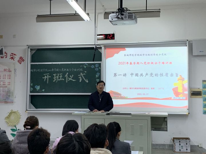 3月17日下午,城市与规划学院2021年春学期入党积极分子培训班开班仪式在城资楼A108举行。公司党委书记王广飞教授出席开班仪式,并为入党积极分子讲授专题党课,出席开班仪式的还有院团总支书记王寅、院学工办主任杨珊珊、院学工办马睿婷,以及来自公司2019级、2020级的98位入党积极分子。仪式由院学工办孙树叶主持。