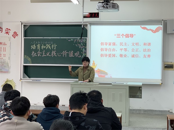 3月24日,公司春学期入党积极分子培训班第二讲在城资楼A108开设《培育和践行社会主义核心价值观》专题党课。此次专题党课特邀公司党委员工工作部部长、学工处处长李健明主讲,公司2019级、2020级98位入党积极分子参加此次专题党课。本次党课由公司党委书记王广飞主持。