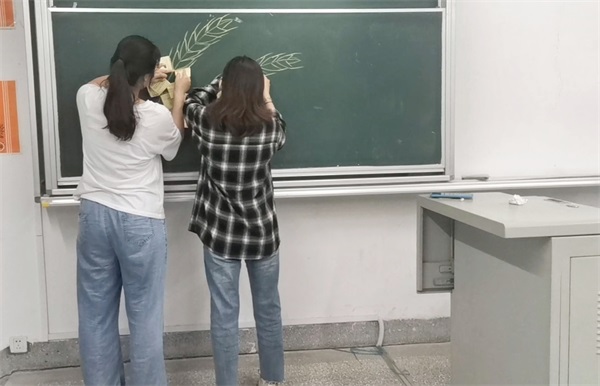 活动伊始,地科192班罗城同学为大家简单介绍袁隆平院士的生平及为国家、为人民做出的贡献,指出袁隆平院士的“禾下乘凉梦”,让同学们深深体会到袁隆平院士伟大无私的奉献精神和浓厚的家国情怀。接着,进入本次悼念活动的重点环节,全体同学肃然起立,自觉鞠躬一分钟,对院士致以最深切的缅怀。地科191班管妍表示:“粒粒皆辛苦,后辈不敢忘。袁隆平爷爷用毕生的心血浇灌着整个中国的水稻,让饥饿变为不可能,让所有人都能吃上饭。米香弥漫,饱食者应忆袁公。”她呼吁大家珍惜粮食,做到光盘行动,以实际感恩追忆袁隆平院士。悼念活动结束后,为更好地了解袁隆平院士,大家纷纷观看电影《袁隆平》,在便利贴上写下自己的感想,并将自己的便利贴贴至黑板上,拼成麦穗状以慰袁隆平院士。