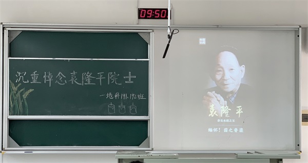 为缅怀袁隆平院士,追忆袁老对国家做出的突出贡献,让青年员工牢记这位让中国人“端牢饭碗”的人民英雄,5月24上午10点,王强创建班地科192班联合同专业地科191班全体同学于笃行楼A108举办“沉痛悼念袁隆平院士”主题悼念活动。