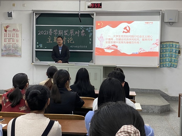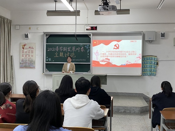 为了加强对员工党员发展对象的培养教育,帮助发展对象进一步明确入党动机,提高党政修养,4月23日,公司在城资楼A211举办党员发展对象培训班主题讨论会,讨论的主题为“老员工党员如何践行社会主义核心价值观,在建设优良学风校风、服务同学全面发展中发挥先锋模范作用?”。公司2021年春学期党员发展对象培训班47名学员参加本次讨论会,讨论会由辅导员孙树叶主持。