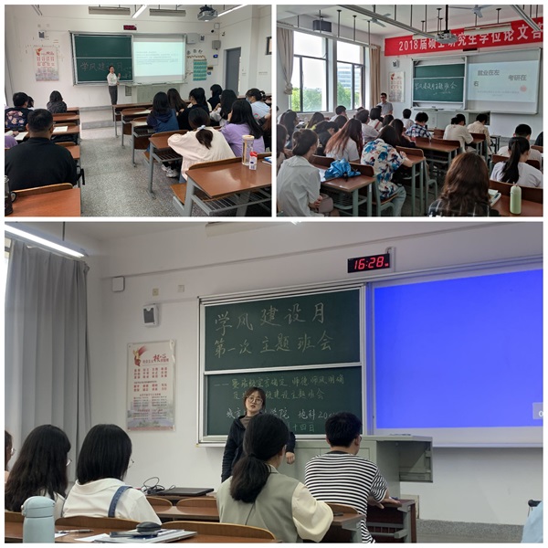 各班级班会中,穿插“如何更好地创建优良学风”“如何提升班级凝聚力”“端正学风,从我做起”等话题讨论、优秀考研考公考编员工的经验分享、主题短片观影等环节。