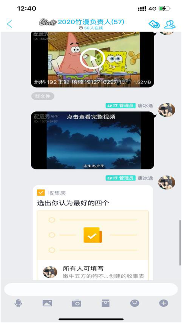 此次活动由动漫社的人员预先准备好消音的片段发布在活动群内,由参加选手自行选择录制配音,选手需以2-4人团队形式参加比赛。活动发布后,同学们踊跃报名参加,各种风格不同的配音片段百花齐放,共收集到作品27份,其中地科191张晨梓、秦怡飞配音的《红楼梦片段选》,海洋197傅睿、徐晗、地科1910李晨曦、邵梦娇的《蜡笔小新之四人搭便车闹剧》,地科192王璐、裴梦圆的《蜡笔小新片段选》,以及人文195云龙的《犬夜叉片段选》配音生动有趣,在众多投稿中脱颖而出,张晨梓和秦怡飞同学的作品在投票中获得最高票数,被选为“悦音桂冠”,其余票数前三的小组被选为了“悦音之星”,活动也在大家的一片称赞中落下了帷幕。