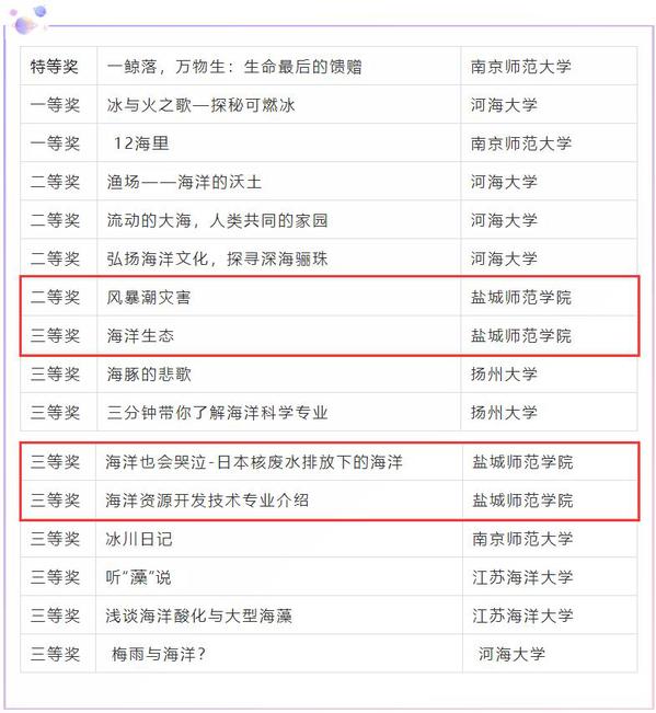 6月8日,由江苏省海洋学会主办的江苏省首届“听我说大海”科普知识讲解大赛落下帷幕,城市与规划学院在本次大赛中喜获佳绩,共有4件作品分别荣获二等奖和三等奖。此次大赛自今年4月初启动以来,经过层层选拔,共有来自河海大学、南京师范大学、扬州大学、江苏海洋大学、yl1111永利集团等高校的58份作品进入决赛。经过专家评审,评选出特等奖1名、一等奖2名、二等奖4名、三等奖9名。