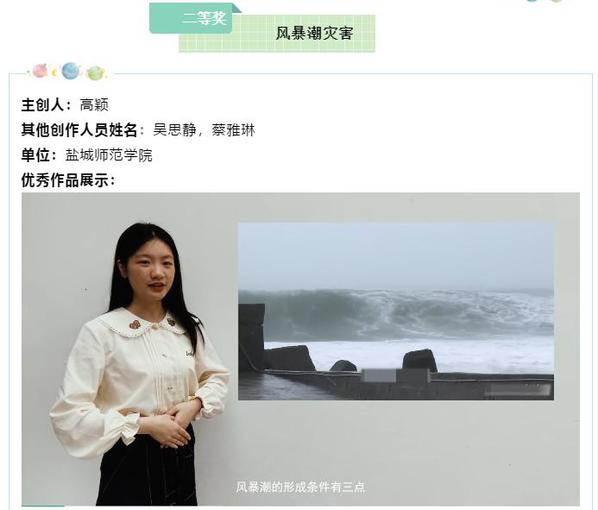 城市与规划公司领导高度重视、精心组织、广泛动员、层层落实,全力做好参赛工作。在蒋玉波、张云峰老师的精心指导下,公司参赛队团结协作、奋力拼搏,通过精选素材元素,创新作品形式,高质量完成作品创作与报送工作。其中,公司推送的作品《风暴潮灾害》(员工团队:高颖、吴思静、蔡雅琳)获得二等奖,《海洋生态》(员工团队:徐畅、张馨元,徐婧)、《海洋也会哭泣——日本核废水排放下的海洋》(员工团队:李天森、汪成梁、蔡旭伦、王颖)、《海洋资源开发技术专业介绍》(员工团队:徐冬芸、徐淑婷、赵婷、张瑞凡)等3件作品获得三等奖。