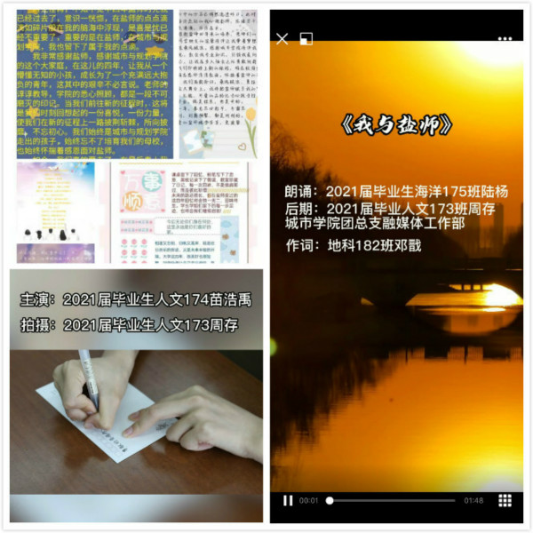 留下青春印记,不负美好时光。公司邀请毕业生通过演唱和朗诵的方式为《凤凰花开的路口》与《我与盐师》MV注入音频,邀请学院同学共同参与拍摄,打造学院2021届毕业生专属MV,为2021届毕业生留下难忘的青春印象。同时,6月18日,学院组织师生为毕业生写下毕业寄语,通过盲盒的形式派发至毕业生的手中,希望毕业生在今后的学习或工作中感受到母校浓浓的爱。