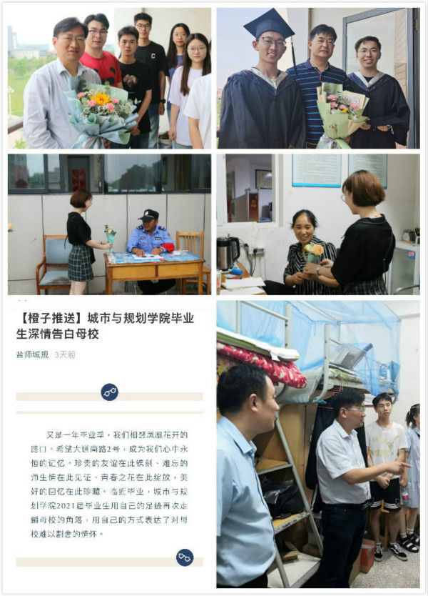 城市与规划学院根据学校统一部署,结合学院实际,精心做好2021届毕业生离校教育管理工作,通过形式多样、贴合专业、凸显特色的方式推动毕业生文明离校、安全离校、温情离校,为毕业生留下母校美好印记,刻画青春难忘记忆。