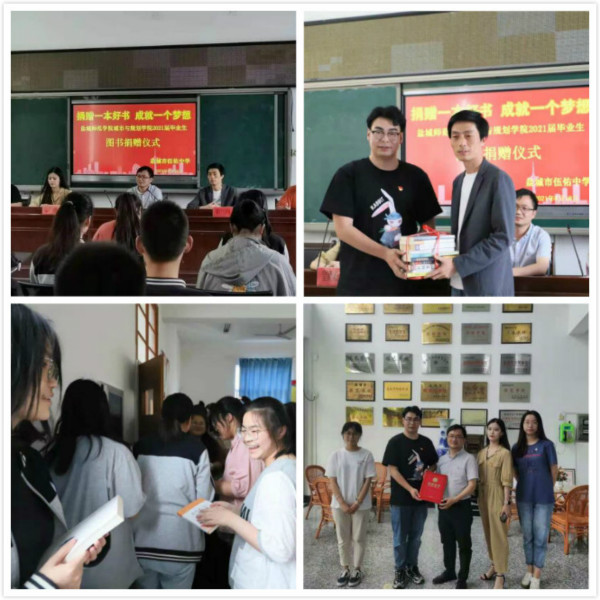 开展图书捐赠,留下一抹书香。6月18日,学院毕业生党员赴志愿服务活动基地盐城市伍佑中学开展“捐赠一本好书 成就一个梦想”图书捐赠活动,表达学院毕业生无私的奉献精神及情怀。伍佑中学办公室主任徐东东代表学校颁发赠书荣誉证书,并表示:“赠书留香,捐捐永流,感谢城市与规划学院毕业生党员充满情谊的礼物,作为一名盐师员工,我感受到了母校浓浓的情怀,希望全体伍中学子向优秀老员工党员学习,在未来的学习中绽放光彩!”