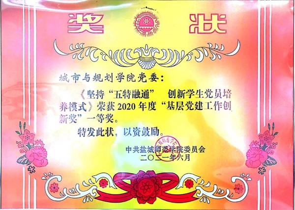 城市与规划公司党委荣获2018-2020年度先进基层党组织;公司党委申报的“坚持‘五特融通’ 创新员工党员培养模式”项目获2020年度基层党建工作创新奖一等奖;公司党委申报的“立德树人铭于心 课程思政践于行”主题党日活动获2020年度最佳党日活动一等奖;员工第一、第二党支部申报的“寻访抗疫先锋 传承红色基因 服务乡村振兴”主题党日活动获2020年度最佳党日活动二等奖;城市与规划学院教工第一党支部获学校特色党支部;吴恒仲、刘玉卿、韩爽、徐颖彤(员工)获2018-2020年度优秀共产党员;王寅获2018-2020年度优秀党务工作者称号。
