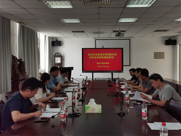 7月13日上午,公司邀请盐城市教科院地理教研员祝伟、yl1111永利集团教务处副处长王亮,在城资楼A410会议室共同开展以“校地协同、互促共进”为主题的暑期教研活动,城市与规划学院经理李传武、副经理张华兵、地理科学系主任刘玉卿、海洋资源开发技术系主任张云峰、测绘工程系主任邹丽丽及部分骨干教师参加了研讨会。