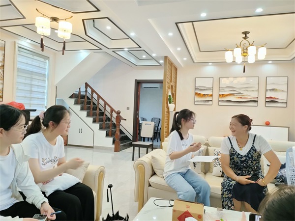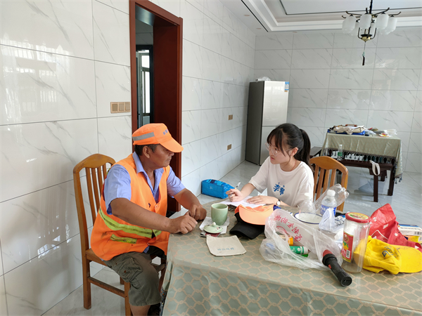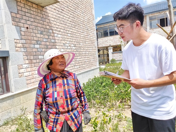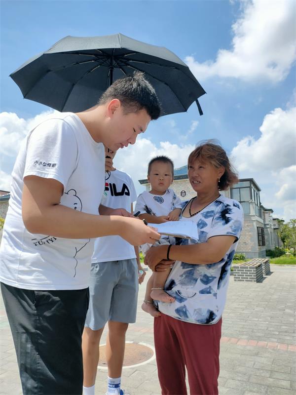 在双河村,团队成员通过问卷调查、深入采访、实地考察等形式观民情,话家常,聊现状。通过陆续走访三十余户村民家中,了解村民们的生产、生活、生态现状。村民王大爷说:“我们拿着政府的养老补贴,这几年政府推振兴,现在生活条件越来越好,村里环境也越来越好,真的要感谢共产党、感谢国家。”