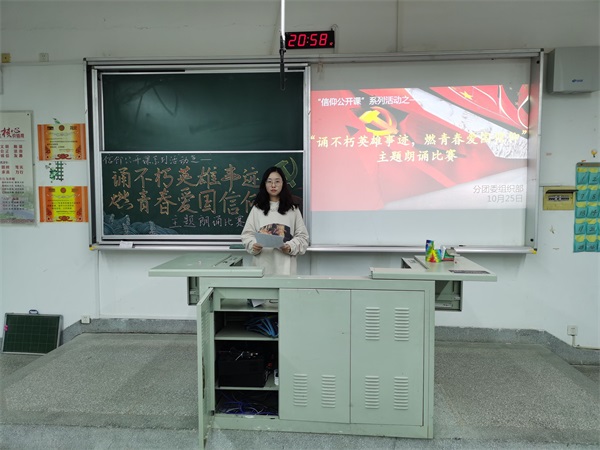 为缅怀先辈们高尚的爱国情操,增强青年学子的爱国情怀,10月25日晚上,公司于笃行楼A109开展“诵不朽英雄事迹,燃青春爱国信仰”主题朗诵比赛活动。