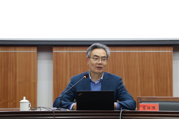 活动伊始,高汝伟教授就以中国近代发展这一历史进程展开,通过对世界上多个发达国家的发展道路做对比,形象生动的向同学们介绍了现代化发展趋势以及中国式现代化的新道路。接着,高汝伟教授分别通过方向目标、鲜明物质、动力源泉、领导核心、价值愿景等五个维度详细阐述了中国共产党开创的现代化历程的社会意义和国际意义,刨析中国式现代化道路的先进性。最后,在同学们关于理想信念的提问下,高教授指出当代青年学子是社会主义现代化道路的建设者和接班人,应当坚定理论自信、道路自信,为中国特色社会主义事业添砖加瓦。