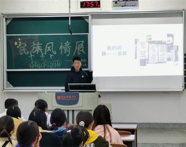 在此次活动中,通过展示各个民族、地区的美好风光、当地习俗、文化特色和特色语言等多种形式,充分展现了少数民族多元文化。另外,在本次活动中,也邀请了一些同学对本民族文化进行宣讲,几位同学结合了PPT或视频生动形象地向同学们介绍了本民族文化特色,其中,畲族的雷嘉杰同学向大家展示了畲族的特色服装和风俗,而回族的杨思雨同学说道:“56个民族56枝花,56个民族是一家”,体现少数民族同学对于民族团结统一的高度支持,也充分展示出公司少数民族和汉族学子融洽相处的氛围。