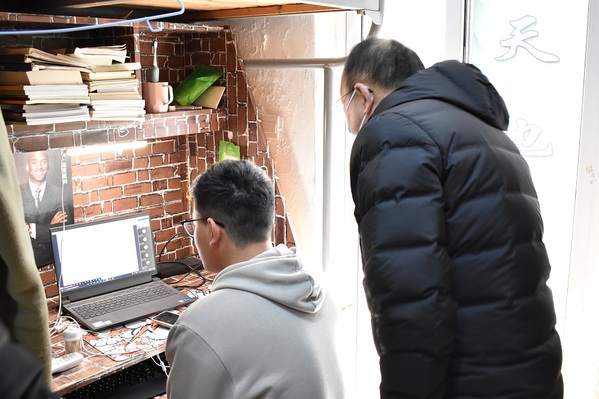 开学伊始,因疫情形势严峻,按照防控管理要求,自2月21日起,公司全面开启线上教学模式。为加强了解同学们线上学习情况,提高同学们线上学习热情,2月24日,公司党委书记郝保成带领辅导员深入员工宿舍对员工线上上课情况进行检查。