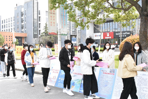 在沁园食堂广场,志愿者通过宣传展板介绍我国现存水资源情况,就今年两会期间政府工作报告中关于节能节水、保护水资源,碳达峰碳中和工作等方面进行了专题介绍,并以倡议书的形式引导同学们“珍惜水、爱护水”,增强节约意识、环保意识和生态意识。活动中,后勤保障集团能源管理科科长、节能办主任梁越呼吁同学们:“弘扬优秀水文化不仅仅是标语,我们要从自身做起,从宣传到落实,才是真正的人水和谐利万家”。在活动期间,学院通过QQ、微信等新媒体平台线上营造浓厚的节水、惜水、爱水的“水文化”宣传氛围,得到了同学们的积极响应。