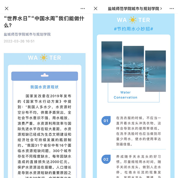 为一进步贯彻落实习近平生态文明思想,落实国家节水行动,传承我国水文化和水文明,树立同学们节水意识,激发同学们节水激情,3月26日-28日在第三十五届“中国水周”期间,城市与规划学院联合后勤保障集团开展“中国水周”——“惜水护源,延续生命”主题教育活动。