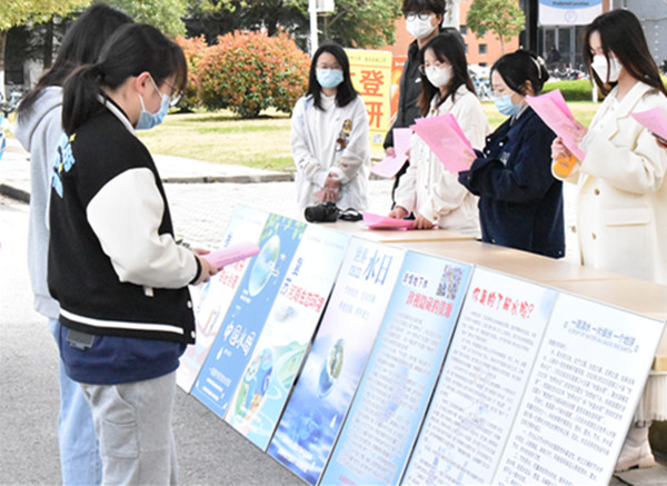26日上午,在沁园食堂广场,文化研究协会志愿者通过宣传展板介绍我国现存水资源情况,节约用水的意义、生活节水小窍门等知识,并就今年两会期间政府工作报告中关于节能节水、保护水资源,碳达峰碳中和工作等方面进行了专题介绍,并以倡议书的形式引导同学们“珍惜水、爱护水”,增强节约意识、环保意识和生态意识。在活动期间,学院充分利用微信公众号、QQ等新媒体平台,推送多期《“世界水日”“中国水周”我们能做什么》,营造浓厚的节水、惜水、爱水的“水文化”宣传氛围;组织开展“点滴清泉 惜水长流”线上节水知识竞答、“节水型高校建设方案模拟招标会”等主题活动,员工在活动中收获专业知识,转变用水观念,增强节水意识,践行节水责任。