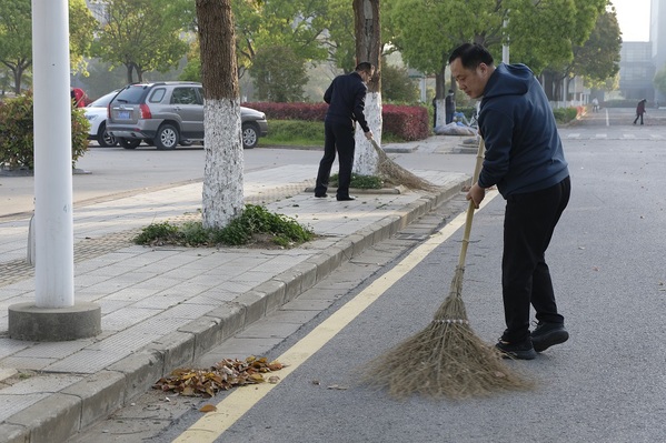 在校内学海大道上,领导干部拿着扫帚、簸箕带头参加劳动,或打扫路面,或清理落叶,确保校园卫生干净整洁,同时通过体力劳动调解大家情绪,增进身心健康。经过清扫,学海大道环境焕然一新,给留校人员提供一个整洁、舒适的校园封闭环境,为抗击疫情、保护师生健康筑牢防线。