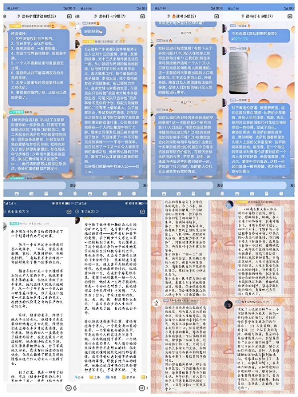 披沙炼金,共享书中经典。读书就是思索,阅读就有感悟。为促进读书活动的深入开展,提高同学们的阅读质量,使同学们养成良好的阅读习惯,学院要求同学们在阅读时要有一些笔记,抄录时要有一些分析,闭卷时要有一些感悟,在读书小组群里进行经典摘抄和读书感悟分享,以丰富的读书形式陪伴同学们在阅读中感悟人生价值。