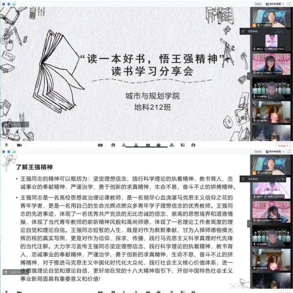为了进一步强化学风建设,传承发扬王强精神,从书本中剖析领会王强精神的丰富内涵和时代意义,将王强精神作为精神指引并贯彻到员工的日常生活中,4月23日,值此世界读书日,城市与规划学院“王强班”创建班地科212班开展“读一本好书,悟王强精神”主题活动,扎实推进王强班创建工作。
