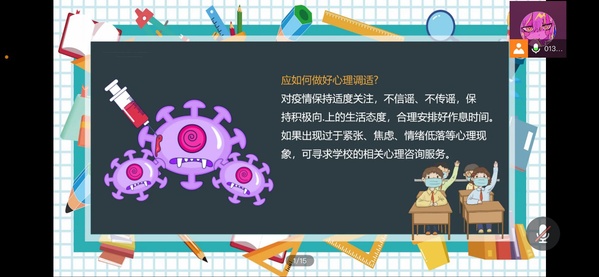 本次活动分为两个部分。第一部分是视频征集,记录大家防疫时期,在校期间积极健康、有趣独特的生活。同学们的创意很多,拍摄的视频种类多样,有宣传防疫小知识的情景剧,有在防疫期间踊跃参与志愿服务的经历、有和小伙伴们在宿舍的搞怪日常、还有捕捉校园景色的足迹记录等等。同学们的视频制作都很精心,视频内容也反映了大家积极乐观的生活态度。其次,举行了线上疫情防控生命宣讲,向同学们普及了许多疫情防控的健康小知识,呼吁大家积极配合学校疫情防控工作。在宣讲会的结尾,主持人向同学们展示了前期大家制作的精彩视频,与大家一起分享美好点滴。