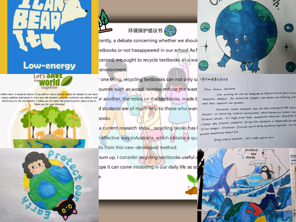 活动中,同学们自主了解目前地球所面临的环境问题,选中某个地区对其进行环境问题分析,并制作海报和倡议书为地球发声,从而提高同学们环境保护的意识,同时运用英语也可以加深对相关专业地理词汇的印象。而同学们迸发思维的火花设计相关海报也让大家感受到经千万年洗礼形成的一草一木,本次活动也获得同学们的一致好评,并表示希望以后能多多参加此类有意义的活动。