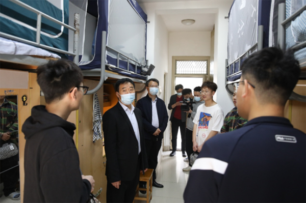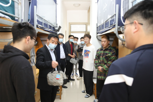 走访期间,戴斌荣一行与同学们进行亲切交流,详细了解每位员工的思想动态、线上学习和生活状况,叮嘱同学们要严格遵守学校疫情防控各项管理规定,勤洗手、常通风、多锻炼,保持良好的作息习惯,创造温馨的宿舍小家;抓好线上课程,学好专业知识,做好人生规划,提升个人价值。