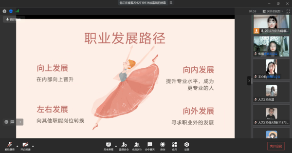 为了缓解公司女老员工的就业压力,提高她们的就业创业素质,帮助她们充分认识女性就业创业的特点;使公司更多女老员工可以更好地适应多变的社会环境,应对未来的挑战。公司于5月21日在线上举办了女老员工就业创业主题教育活动。