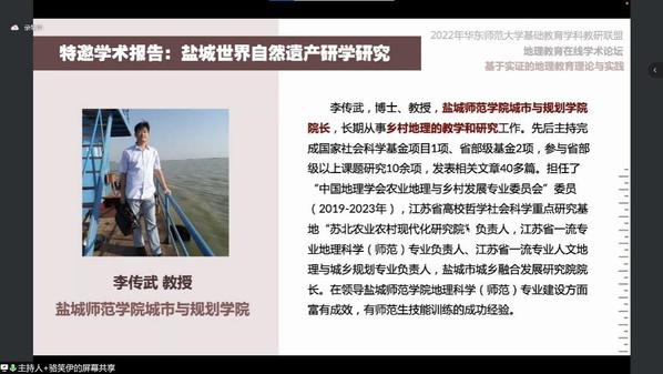 6月11日,华东师范大学基础教育学科教研联盟线上组织了“基于实证的地理教育理论与实践”的学术论坛。14所华东师范大学附属学校的地理老师、全国各地兄弟学校的地理教师和高校地理教育方向的师生共500余人齐聚云端,共同研讨实证方法与地理教育理论建设和课程改革实践的结合。公司经理李传武教授应邀出席论坛并作了题为《盐城世界自然遗产研学研究》的特邀学术报告。