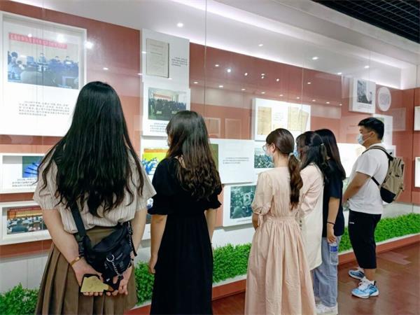 7月5日下午,实践团成员到达坐落于东台市五烈镇甘港村村史馆,成员们从村史馆中了解到了东台农村尤其是甘港村的发展历史和承载的红色基因,通过参观村史馆里的老物件、老照片和一些文字资料,从住宿条件、交通网络、农耕技术等等方面的巨大转变,真切的感受到家乡全面推进乡村振兴战略的建设成果,深入了解了党领导下的中国农村组织建设史、农业生产发展史和农民生活进步史。村史馆工作人员还和实践团的成员介绍到:村史馆将党史教育和农村发展相结合,就是希望大家能了解村情村史和老一辈人留下的红色精神和红色文化。