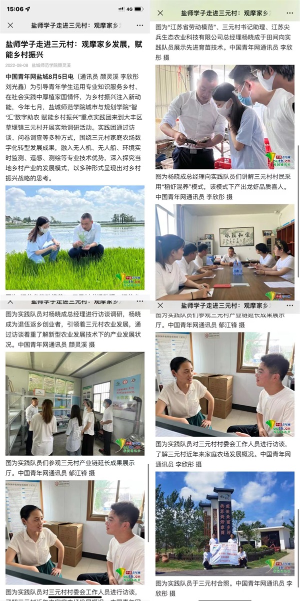 8月1日,中国青年网报道了城市与规划学院“智‘汇’数字助农 赋能乡村振兴”社会实践团的暑期社会实践活动。