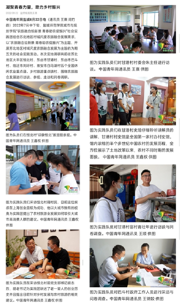 8月22日,《中国青年网》报道了城市与规划学院“农旅融合绘新景,青春助农促振兴”实践团的暑期社会实践活动。