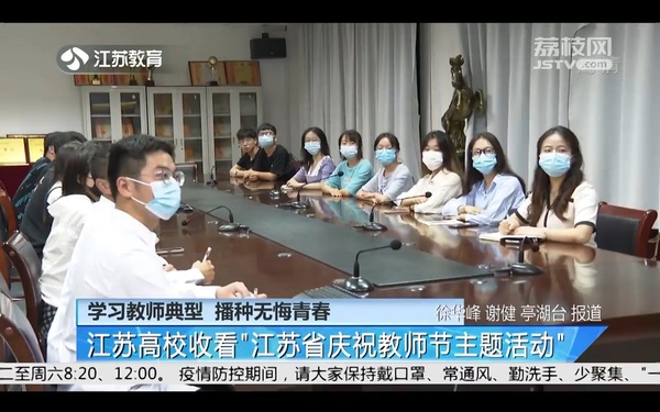 本次教师节主题活动共分为“立德修身”“育人治学”“开拓创新”3个篇章。活动现场,一个个鲜活暖心的故事、一位位甘于奉献,无悔付出的代表,以点带面,生动刻画出为江苏教育事业发展做出突出贡献的辛勤园丁形象,描绘出江苏教育系统的群英谱,展现了江苏百万教师及教育工作者的初心和情怀。观看结束后,江苏省广播电视总台对公司学子进行了采访,同学们结合自身情况,畅谈感想,展望未来。