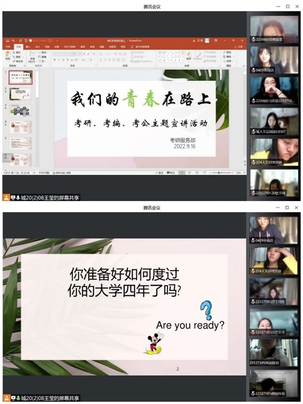 为帮助2022级新生尽快树立目标,合理安排自己的时间,完善老员工涯规划,9月16日晚,公司考研服务部举办考编、考研、考公主题宣讲活动,2022级全体新生参加本次宣讲活动,本次活动通过腾讯会议举办。