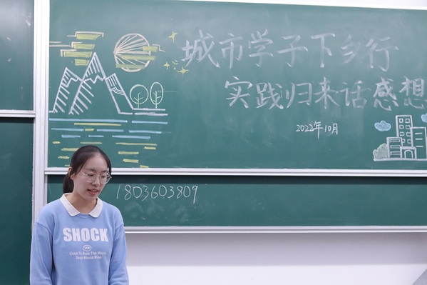 “农旅融合绘新景青春助农促振兴”暑期社会实践团队队长王熹同学以自己暑假社会实践的经历和收获为载体,详细介绍了该实践团队深入苏北多个乡村开展村域农旅融合发展的主题社会实践活动过程。王熹表示:“我们团队成员深入乡村,实地考察,同时也利用了我们所学的专业知识来解决调研中的一些问题,这次‘三下乡’暑期社会活动也为我们今后的专业学习打下了实践的基础。”