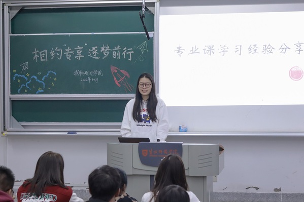 张欣悦带领2022级新生了解了各专业学科的情况,使他们熟悉大学四年所要学的专业课;同时她分享了自己平时学习专业课的学习方法,着重强调了学习时的态度、正确的学习思路以及如何平衡工作与学习的关系,并为大家提供了提高学习效率的思路。另外四位同学精彩纷呈的分享展示,同学们受益匪浅,纷纷表示这场专业分享会使他们找准定位,明确目标。
