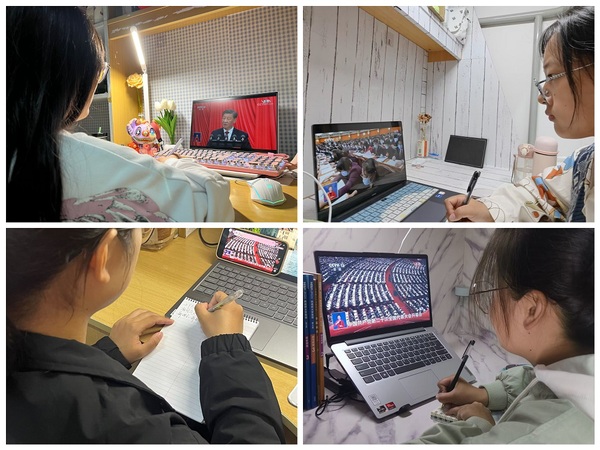同学们认真聆听,深切感悟,了解了过去五年的工作、新时代十年在经济、政治、社会、文化、生态环境等方面的伟大变革,以及全面建成社会主义现代化强国,以中国式现代化全面推进中华民族伟大复兴的宏伟目标。