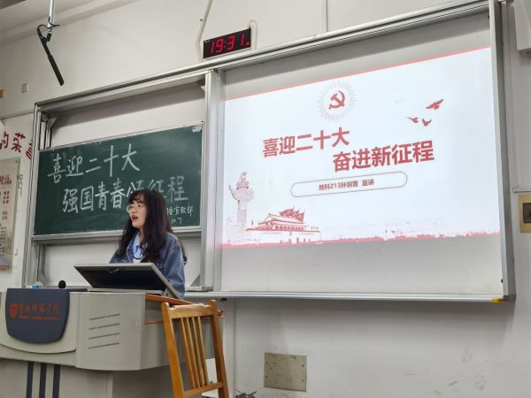 “强国青音颂征程”主题宣讲。10月7日晚,公司分团委举办了线下宣讲竞赛活动,七位宣讲者讲述了党的十九大以来我们身边的家乡、人和事发生的变化。地科213班孙雨萱同学从“衣”“食”、“住”“行”四个方面讲述了党的十九大以来乡镇地区的变化,以自己的亲身经历赞颂党的伟大领导;地科222班卢汕骏同学则以长江及其沿岸环境为线索讲述了自十九大以来党通过一系列的正确决策让长江及其沿岸的生态环境重新焕发生机的伟大成就。
