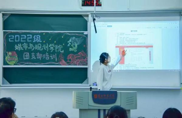 在培训过程中,大一各团支部成员仔细听讲,认真记录重点内容。首先,来自人文215团支部的杨瑞和地科212团支部的吴玮一作为老生代表,向新生介绍了班级团支部的日常工作,分享了团干部的工作经验。