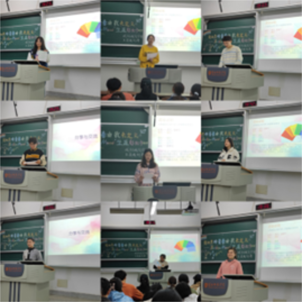 活动一开始,主持人金灵同学向参加此次活动的同学们简单介绍了一下生涯彩虹卡的意义,紧接着同学们纷纷拿出事先准备好的契合自己性格的彩纸和彩笔创作自己的专属生涯彩虹卡。每位同学都进行了认真的创作,不仅结合了自身实际,还充分发挥了想象力。在接下来的分享环节中,几位同学上台分享了对应自己的信念与智慧的颜色,并提出了进入大学以来自己的一些问题。有问题就会有方法,每个同学提出的困惑都有别的同学乐于解答。丁雅欣同学第一个上台进行分享,提出了“忙,累,困”三个问题,丁俞智同学也在第一时间分享了自己的经验,给她的困惑提供对策。龚天阳同学也针对史小兰同学提出的“不知道该不该去尝试从没接触过的事物”的问题提出了自己的见解,她认为在大学参加各种各样的竞赛、多交朋友都是很重要的。活动最后,同学们高高举起自己的作品合影。