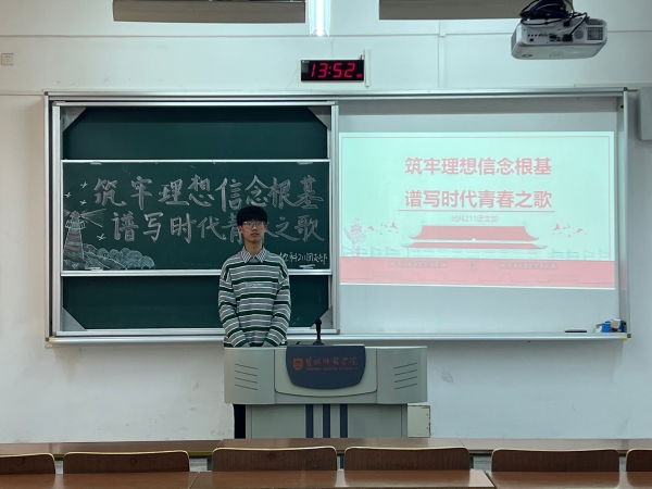 各团支部组织同学深入学习习近平总书记在中国人民大学考察调研时发表的重要讲话精神,深入理解“国际老员工节”。课上,各位团支书引导同学思考:作为新时代青年,应该如何与时代同向同行。地科223班团支书于点同学表示:“我们要用最新的理论知识武装头脑,用最坚定的理想信仰鼓舞精神,肯担当,敢作为,为全面建成社会主义现代化强国、实现第二个百年奋斗目标,以中国式现代化全面推进中华民族伟大复兴而奋斗!”