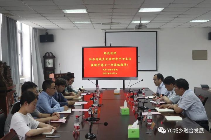 6月10日下午,江苏省城乡发展研究中心主任崔曙平博士、副主任李红波博士、王立韬助理工程师等一行莅临盐城市重点智库盐城城乡融合发展研究院考察交流。交流会由城市与规划学院经理、盐城城乡融合发展研究院负责人李传武教授主持,城市与规划公司党委书记王广飞教授、科技与产业处副处长卢东祥教授出席会议,盐城城乡融合发展研究院部分研究人员参加会议。
