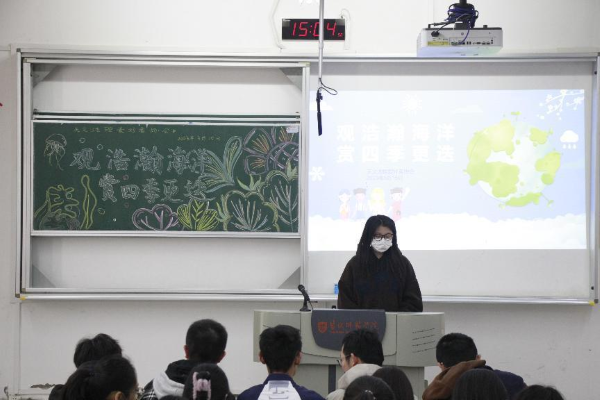 海洋,是生命最初的摇篮,孕育着地球上超过半数的生命,同时,也是地球上最大的气候调节器。活动中,人文225班的张心怡同学利用图文结合的方式为同学们进行有关海洋与气象的科普。他先向我们普及了世界气象日和世界水日两大节日,介绍了水资源现状,强调了我们应对海洋实施保护,带领同学们进一步了解了海洋气象。同学们在天象馆进一步了解了地球这个水世界,领悟到海洋与四季变化之间微妙的联系。地科222班陈繁琦同学表示:“本次活动让我们更加了解海洋与气象之间的关系,要更加关注世界水资源保护工作,自觉提高节水意识。”