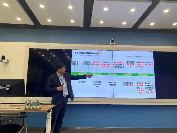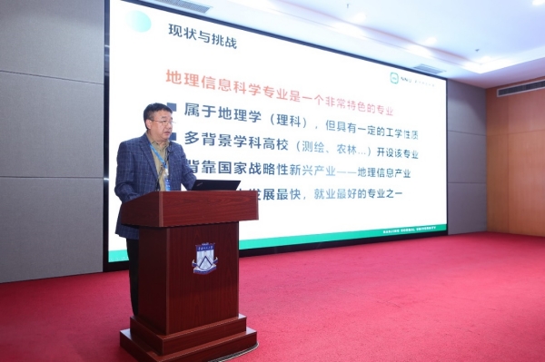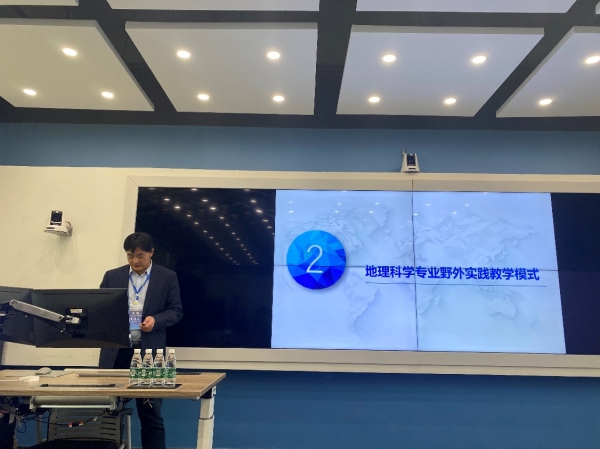 本次会议设地理学专业建设、教材与课程建设、人才培养体系、教学改革、野外实习和课程思政6个分论坛。李传武经理在地理学野外实习分会场作了题为“地方高校地理科学专业野外实践教学模式研究”的专题报告。报告展示了地理科学专业野外实践教学背景、公司地理科学专业野外实践教学模式和野外实践教学案例。以国家级地理科学一流本科专业建设点为契机,公司形成了野外实践教学系列课程资源、实践基地群与教学团队建设,形成了递进式多元化的实践教学体系和“1234”野外实践教学模式。以世界自然遗产、江苏农房改造、三农调研、江苏家庭农场调研等开展了野外实践教学,员工的野外实践能力得到了显著提升。