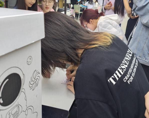 活动过程中,同学们反思自身学习生活中遇到的困惑与麻烦,将自己的心里话写在便利贴上,并将便利贴分别投入不同颜色的箱子中,等待有缘的同学进行解答。随后再从其他箱子中拿出便利贴,结合自己的生活体悟,对便利贴上其他同学的问题进行回复。此外,大家还互相分享了自己生活中的趣事,审视过去、感悟当下、畅想未来,看到自己不曾觉察的潜意识与内在矛盾,在欢乐和谐的气氛中,使内心的压力得到了充分的释放。地科222班严睿同学表示:“通过这次活动,我感到轻松愉悦,对接下来的学习生活又重新充满了干劲。”